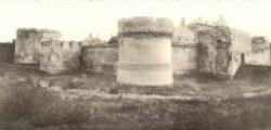 formait un parallélépipède garni de tours circulaires aux angles suivant le schéma