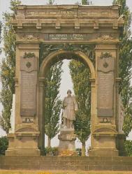 pénètre dans Amiens le 31 août. Le monument aux morts municipal, de dimensions exceptionnelles pour un petit village, est en fait un véritable arc de triomphe sous lequel la statue d'un " poilu ", symbolise la bravoure du soldat français. | |