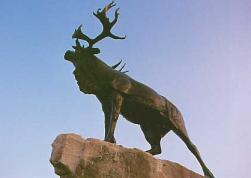 Un chemin conduit à une table d'orientation, au sommet de la butte du Caribou